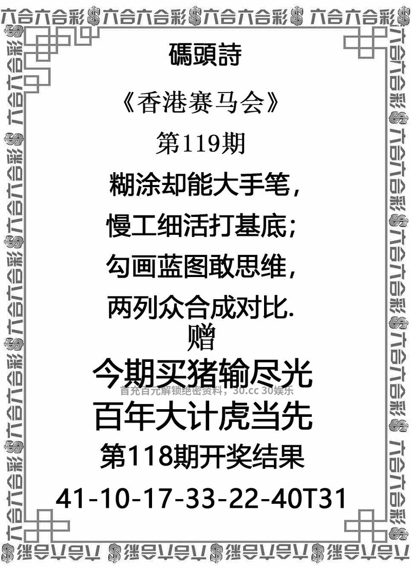 122期:自荣自养自安然,生罗万象皆精彩,事事如心谢圣贤,一八赴约三五邀. 特肖:鼠羊虎龙兔牛 特码:30.35.28.14.39.29 |